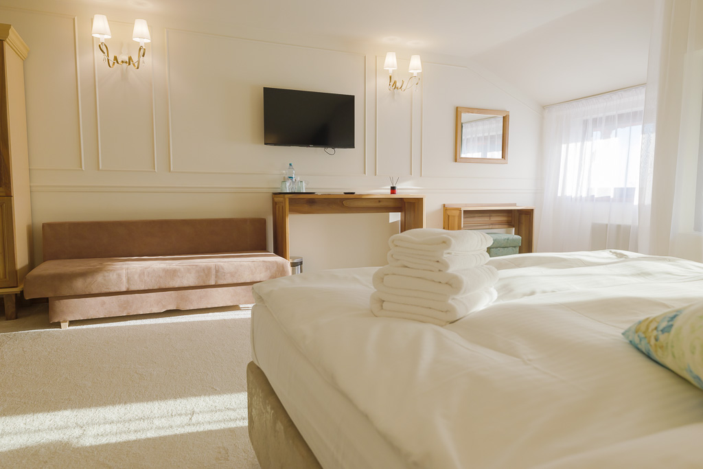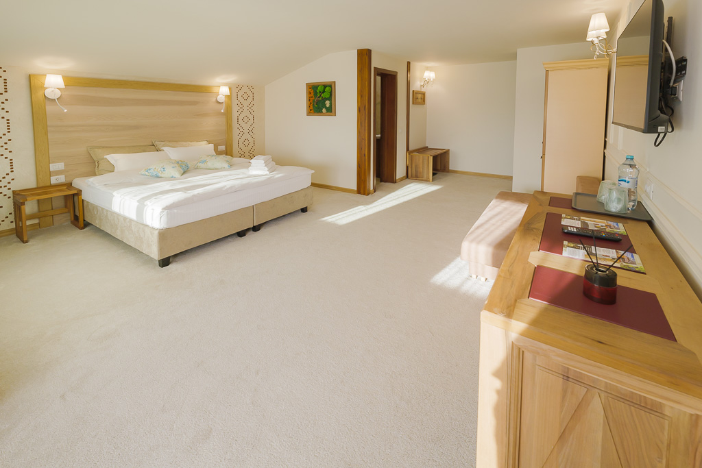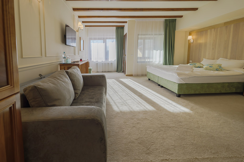In camera de familie se pot caza 2 adulți, 3 adulți sau 2 adulți cu unu sau doi copii 0-12ani.