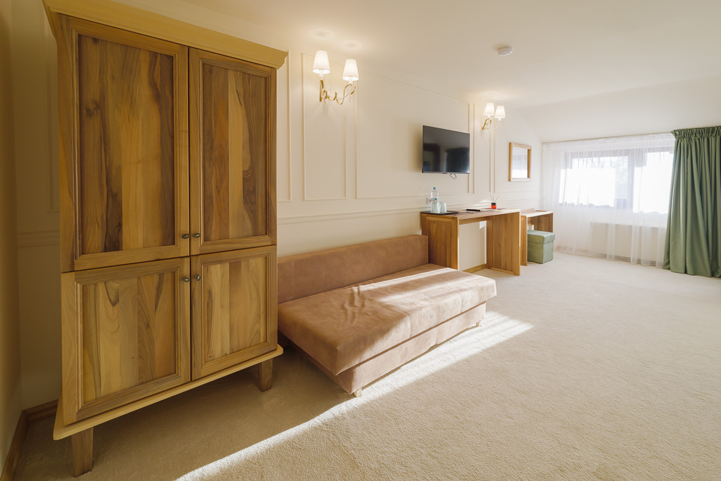 ★ Aer conditionat ★ Baie dotata cu dus ★ Televizor ★ Minibar ★ Cosmetice la baie ★ Fier de calcat la cerere ★ Feon/ Uscător de păr ★ Free Wi-Fi ★ Birou ★ Mochetă ★ Nefumatori